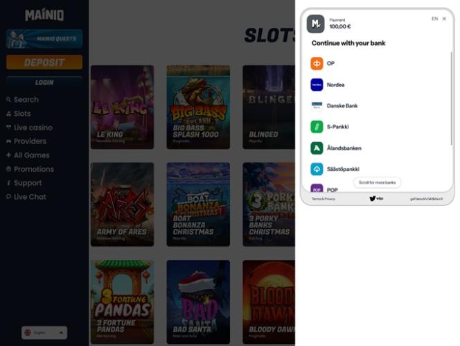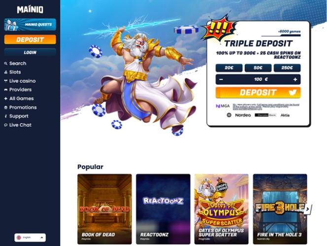 Запущенное в 2025 году, Mainiokasino — это онлайн-казино, ориентированное на предоставление игрокам разнообразного и обширного выбора игр, в которые они могут играть на протяжении всего своего пребывания, включая тысячи онлайн-слотов, игры с живыми дилерами, настольные игры и мгновенные игры. Бренд в основном принимает игроков из Финляндии и приглашает их насладиться всеми играми, акциями и бонусами.