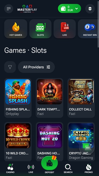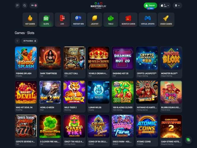 Если вы решите создать здесь учетную запись, вы сможете ознакомиться с обширной коллекцией различных игр. MasterPlay позволяет игрокам просматривать многочисленные категории и подкатегории различных жанров, включая цифровые игры, такие как слоты, и игры с живыми дилерами, такие как блэкджек и рулетка.