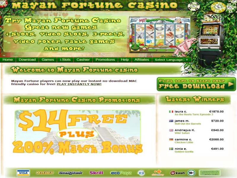 Казино Mayan Fortune — это сайт онлайн-ставок, основанный в 2007 году компанией SSC Entertainment NV. Сайт оформлен в ярком инкском стиле, предлагает обширную библиотеку игр и разумные бонусные условия, что делает Mayan Fortune привлекательным местом для игры для жителей США.Информация о казино