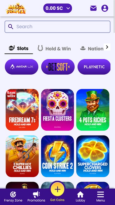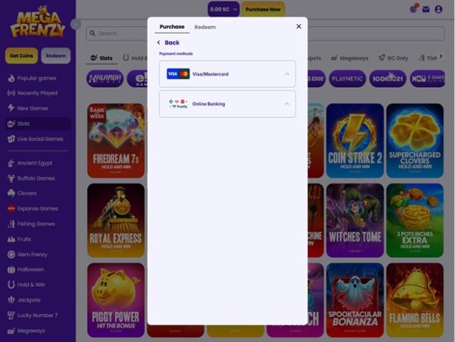 Как и в любом другом современном казино с лотереями, Mega Frenzy также предлагает обширный выбор игровых автоматов в стиле казино, в которые вы можете погрузиться. Библиотека включает в себя все основные категории и жанры, в том числе слоты Megaways, классические релизы, новинки, джекпоты, слоты с рыбалкой и многое другое.
