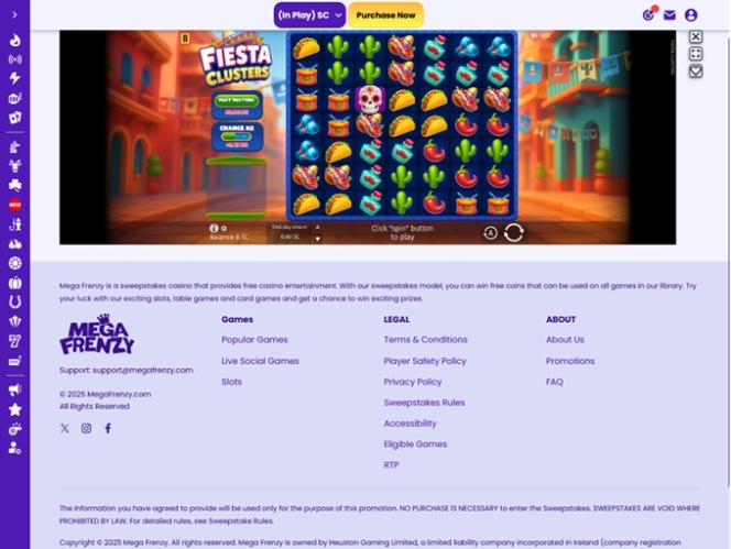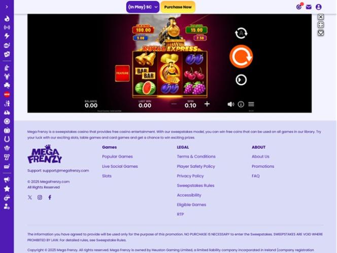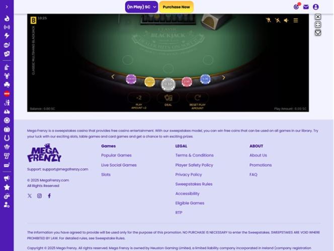Помимо программы лояльности, в которой может участвовать каждый игрок, и эксклюзивного VIP-клуба, куда можно попасть только по приглашению, казино Mega Frenzy также предлагает широкий выбор акций и бонусов, в которых игроки могут заработать дополнительные золотые монеты и Sweeps Coins.