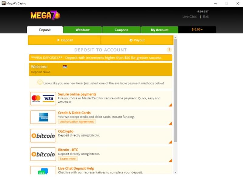 У Mega7 есть несколько неплохих вариантов банковских операций, если вы сможете избежать высоких комиссий за вывод средств. Я обнаружил, что биткойн — лучший вариант для быстрого получения денег, так как другие методы могут обрабатывать платежи несколько дней. Существует лимит на вывод средств в размере 10 000 долларов и минимальная сумма в 65 долларов, что несколько высоковато.