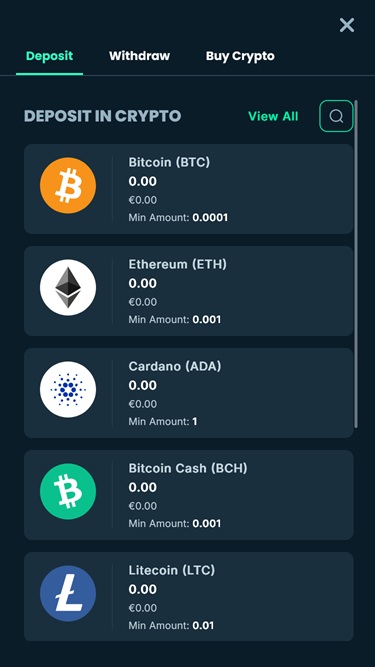 Если вы не знакомы с азартными играми с использованием криптовалюты, не беспокойтесь! Оператор позаботился о том, чтобы все посетители и зарегистрированные участники казино могли легко совершать финансовые транзакции, следуя простым инструкциям, описанным на одной из страниц казино. Это подробное руководство по покупке криптовалюты наверняка пригодится игрокам, которые еще не перешли на онлайн-игры в казино с использованием популярных цифровых монет.