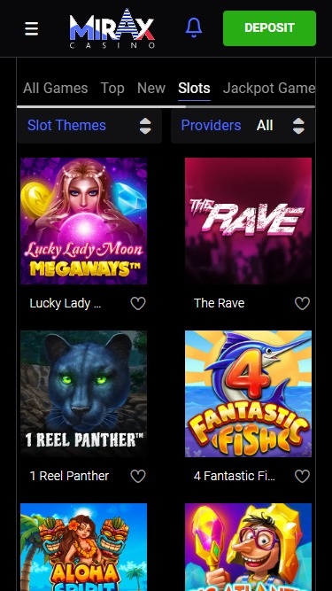 Mirax обладает запоминающимся, красиво оформленным логотипом казино; процесс регистрации прост, а вся платформа оптимизирована для всех доступных устройств, поэтому независимо от того, используете ли вы мобильное устройство или компьютер для доступа к этому онлайн-казино, вы можете рассчитывать на безупречный игровой процесс.