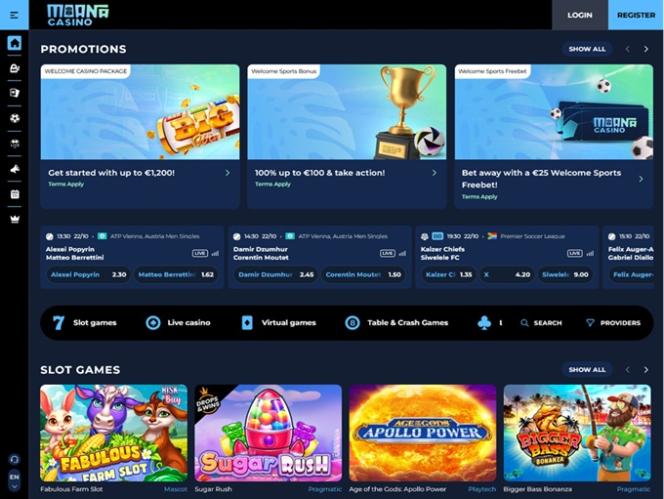 Казино Moana стремится предоставить игрокам всесторонний и приятный опыт, предлагая тысячи захватывающих игр, включая онлайн-слоты, настольные игры, игры с живыми дилерами, игры с живыми дилерами и ставки на спорт. Помимо этого, казино предлагает щедрую программу акций и поддерживает платежи в криптовалюте.