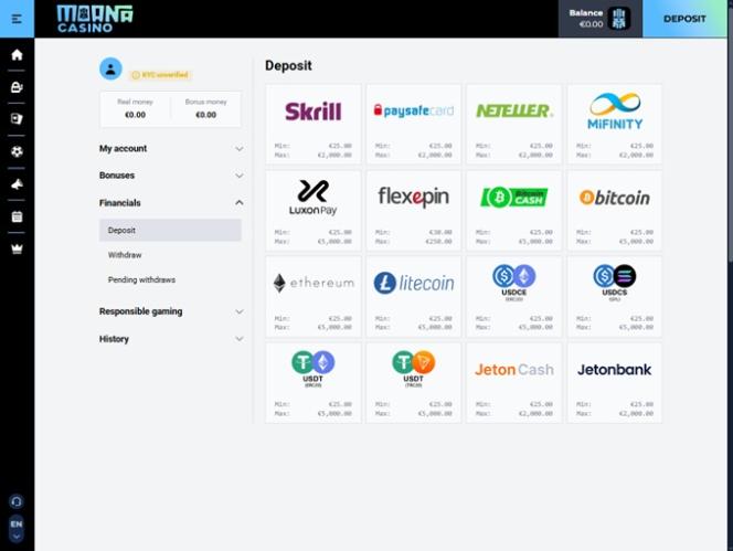 Казино принимает фиатные валюты и криптовалюты для пополнения счета и вывода средств.
