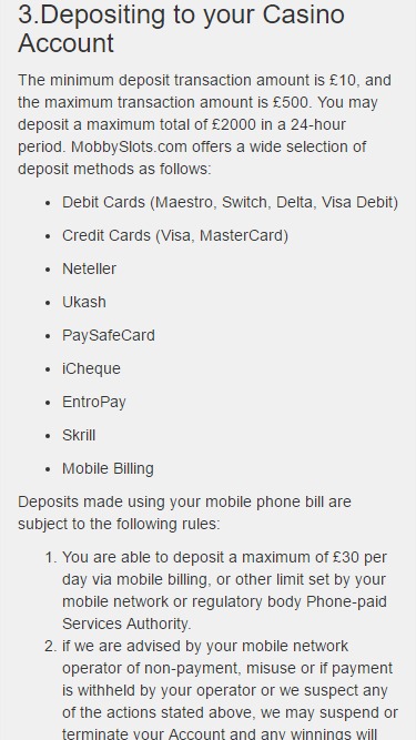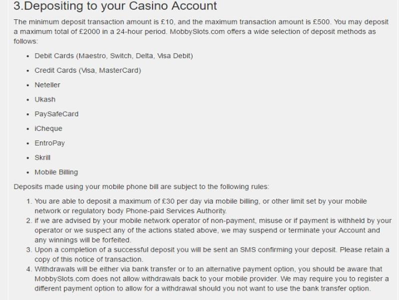 Банковская система в казино MobbySlots довольно неплохая, сайт обрабатывает платежи и выводы средств в тот же день. Пополнение и вывод средств доступны через банковский перевод, EntroPay, Maestro, MasterCard, Skrill, Neteller, Paysafecard и Visa. Ограничений на вывод выигрышей нет, что очень радует.