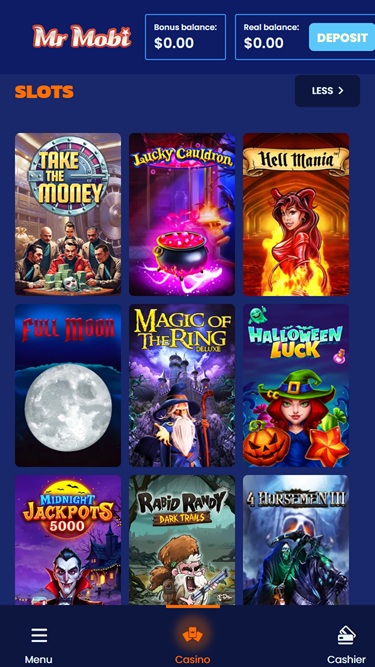 Казино Mr Mobi работает на программном обеспечении Amaya, Microgaming, Net Entertainment, Playtech, 1x2gaming, Barcrest, Big Time Gaming, ELK Studios, EYECON, lightningboxgames, Novomatic, Play'n GO, Quickspin, Rabcat, Thunderkick, Wazdan, Realistic Games, Pragmatic Play, Nolimit City, Red Tiger Gaming, Spinomenal, Skillzzgaming, Fugaso, SYNOT Games, Skywind, Triple Edge Studios, Northern Lights Gaming, Stormcraft Studios, Switch Studios, All41 Studios, Gluck Games, Gameburger Studios, Pulse 8 Studios, Slot Factory, Neon Valley Studios, Shuffle Master, SpinPlay Games, KA Gaming, Real Dealer Studios, GONG Gaming, On Air Entertainment, Buck Stakes Entertainment, Games Global, 2by2 Gaming, Ash Gaming, Blueprint Gaming, Greentube, NextGen, NYX Interactive, ProgressPlay, Tom Horn Gaming, WMS, Inspired Gaming, SG Interactive, Red7Mobile, Scientific Games, Reel Time Gaming, BF Games, Iron Dog Studio, Old Skool Studios, Foxium, Betdigital, Just For The Win, PearFiction Studios, Wild Streak Gaming, Slingshot Studios, Fortune Factory Studios, AvatarUX, Gamevy, Crazy Tooth Studio, ReelPlay, Alchemy Gaming, Rarestone Gaming, Black Pudding Games, Snowborn Games, Hacksaw Gaming, Max Win Gaming, Gold Coin Studios, Bang Bang Games, Half Pixel Studios, Eurostar Studios, Aurum Signature Studios, Lucksome Gaming, Area Vegas, Leap Gaming, TaDa Gaming, Wishbone Games, Circular Arrow, HammerTime Games, INO Games, Nailed It! Games, Neko Games, Reel Kingdom, Oros Gaming, Light & Wonder and Playzia , а его игры предоставляются через веб-платформу, которая доставляется прямо на ваши мобильные устройства.