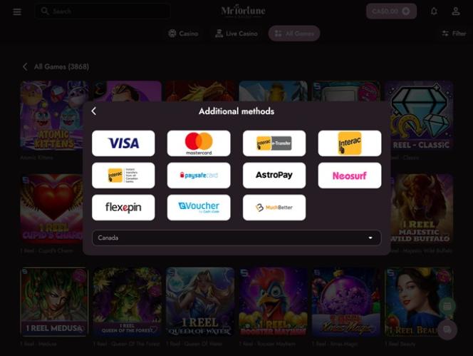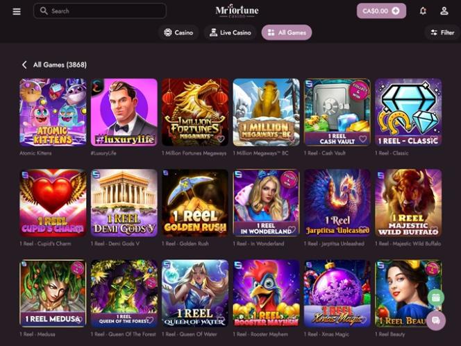 В игровой библиотеке казино представлен богатый выбор игровых автоматов. Среди наиболее популярных игр, которые вы можете попробовать в MrFortune, следующие: Joker's Jewels, Booming Bananas, Royal Fruits MultiLines, Master Joker, Jumbo Joker, Booming Seven Deluxe, Classic Coins, 2x Points, Thunder Coins: Hold and Win, Joker's Jewels Hot, Gold Gold Gold 5000, Inner Fire, Joker's Jewels Wild, Burning Classics Royal Edition, Cashpot Strike 7s, Peppe's Pepperoni Pizza Plaza, Buffalo Hold and Win Extreme 10,000, All-Star Fruits, Jewelling Diamonds, Book Of Camelot, Tropical Thunder…