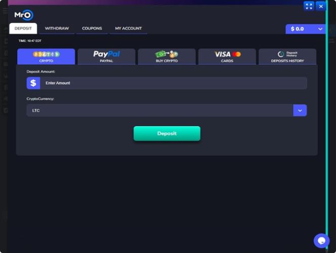 Варианты банковских операций в MrO Casino