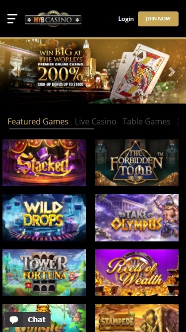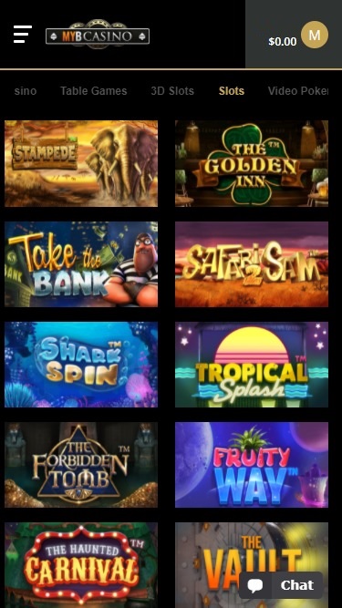 В казино MYB представлено приличное количество слотов, включая игры от BetSoft и нескольких более мелких разработчиков. Игры выглядят хорошо, и вы без труда найдете игру с нужными вам функциями. Есть несколько прогрессивных джекпотов, но мы не рекомендуем играть в джекпоты от BetSoft, так как, как показывает практика, их невозможно выиграть. Поддерживаются также мобильные слоты, позволяющие играть на телефоне или планшете.