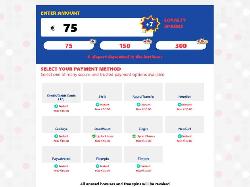 Бонус 100%, максимальная сумма бонуса — 1000 долларов США. Можно использовать один раз в день. Максимальная сумма вывода — 2000 долларов США. Бонусные фишки не подлежат обмену и будут вычтены из суммы вывода. Предложение действительно только для США и Канады.