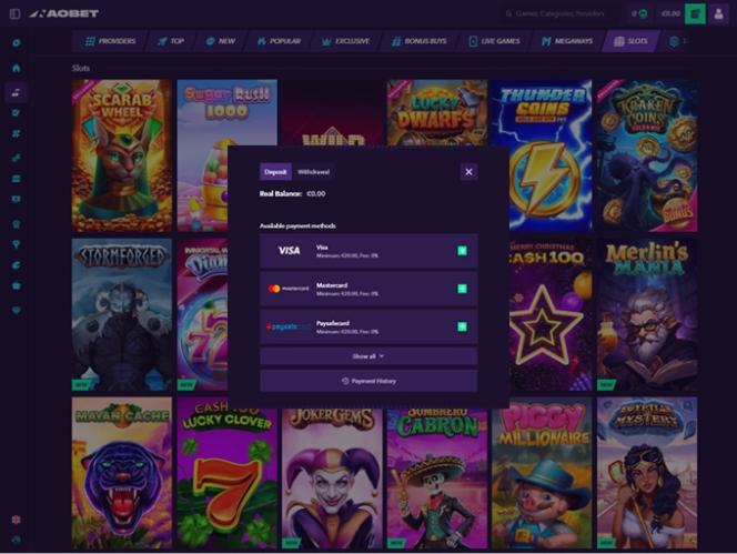 Игровая библиотека организована по категориям, таким как: эксклюзивные игры, бонусные покупки, игры с живыми дилерами, игры Megaways, слоты, настольные игры и многое другое.
