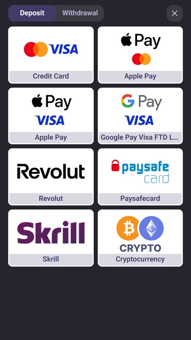 Максимальная сумма депозита зависит от способа оплаты, выбранного клиентом.