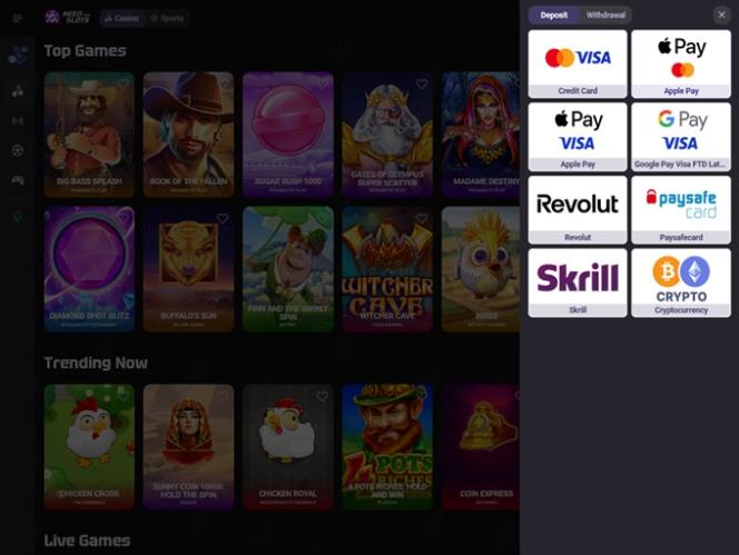 Кроме того, онлайн-казино NeedForSlots предлагает широкий выбор способов оплаты, включая несколько популярных криптовалютных решений, что, безусловно, пойдёт на пользу постоянно растущему числу криптоигроков.