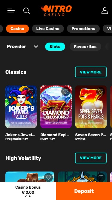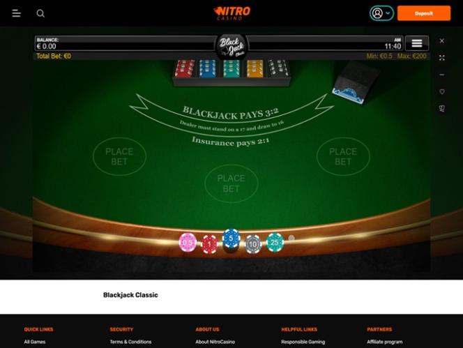 Nitro Casino работает на платформе Microgaming, Net Entertainment, BetSoft, 1x2gaming, Big Time Gaming, ELK Studios, Evolution Gaming, lightningboxgames, Oryx, Play'n GO, playson, Quickspin, Rabcat, Relax Gaming, Yggdrasil, Wazdan, Booming Games, Pragmatic Play, Nolimit City, Felt Gaming, Red Tiger Gaming, Fantasma Games, FunFair, Kalamba, Spin Games, Triple Edge Studios, Northern Lights Gaming, Stormcraft Studios, Switch Studios, OneTouch, Electric Elephant Games, Pocket Games Soft, All41 Studios, Gluck Games, Gameburger Studios, Pulse 8 Studios, Neon Valley Studios, Golden Rock Studios, Spearhead Studios, Swintt, SpinPlay Games, HungryBear Gaming, Real Dealer Studios, Blue Guru Games, PureRNG, Buck Stakes Entertainment, Elysium Studios, Games Global, 2by2 Gaming, Blueprint Gaming, EveryMatrix, Push Gaming, Gamomat, Bally Wulff, Iron Dog Studio, Foxium, Just For The Win, Reflex Gaming, Storm Gaming Technology, PearFiction Studios, Wild Streak Gaming, Slingshot Studios, Golden Hero, Fortune Factory Studios, RubyPlay, 4ThePlayer, AvatarUX, Gamevy, Crazy Tooth Studio, ReelPlay, Japan Technicals Games, Alchemy Gaming, Black Pudding Games, Snowborn Games, Boomerang Studios, Hacksaw Gaming, Max Win Gaming, Gold Coin Studios, Bang Bang Games, Half Pixel Studios, Arcadem, SilverBack Gaming, Peter And Sons, Eurostar Studios, Aurum Signature Studios, Armadillo Studios, Area Vegas, Leap Gaming, Wishbone Games, Spribe, Print Studios, Gaming Corps, HammerTime Games, INO Games, Nailed It! Games, Atomic Slot Lab, Neko Games, Reel Kingdom, Oros Gaming, JVL and Indigo Magic , и сайт развернут на веб-платформе, которая загружается через ваш браузер. Сайт привлекателен и прост в навигации, а также имеет встроенную поддержку мобильных устройств.Blackjack