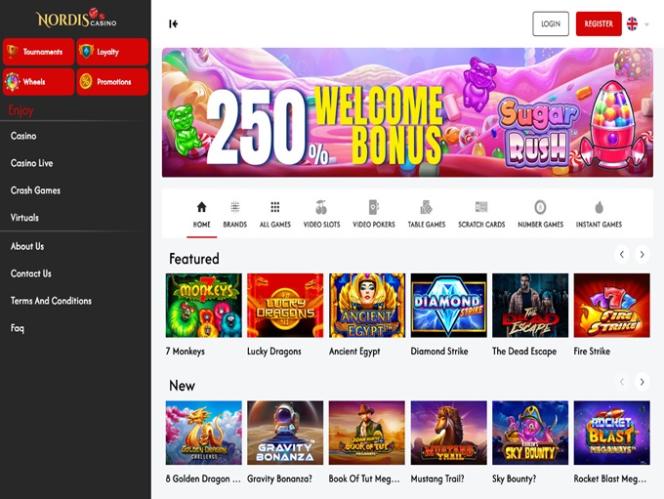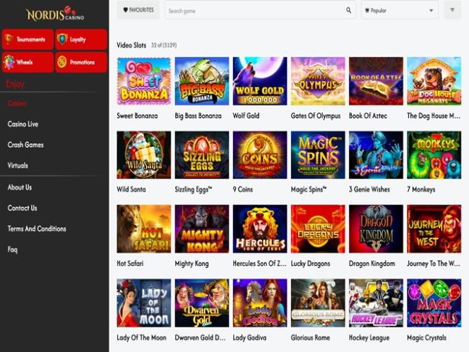 Игры, доступные в Nordis, разделены на несколько категорий, что делает навигацию по платформе простой и удобной. Разделы казино включают: лучшие слоты, новые игры, слоты с джекпотом, настольные игры, видеослоты, видеопокер, скретч-карты, виртуальные игры и видеобинго. Также доступны игры с живыми дилерами.