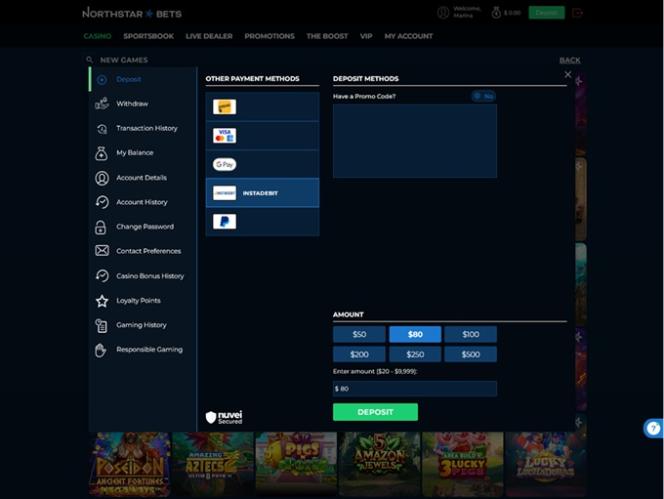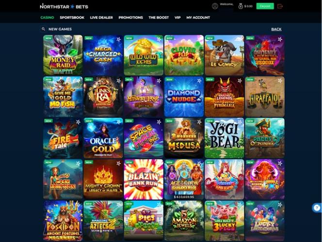 Казино NorthStar Bets предлагает игры, оптимизированные для всех доступных устройств – мобильных и настольных, которые организованы в следующие разделы: Live Blackjack, Live Roulette, Live Baccarat и Game Shows для раздела Live Dealer, а также Premium Slots, Slots, Jackpots, Table Games и All Games для категории Casino.