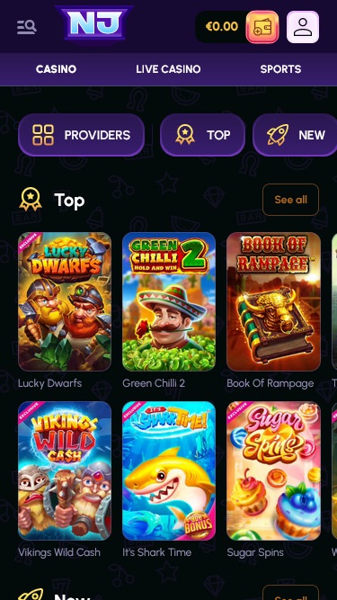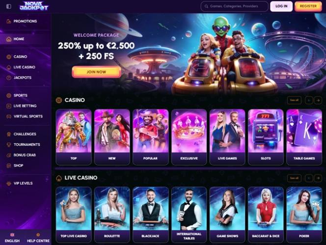 Как уже упоминалось, Novajackpot имеет современную платформу, и весь ее контент чрезвычайно хорошо структурирован. Все доступные игры разделены на три раздела: Казино, Live-казино и Джекпоты.