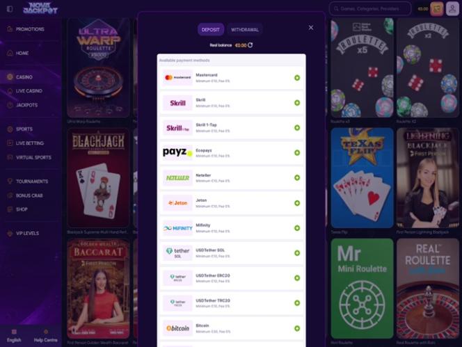 Novajackpot — это крипто-дружественный игорный бренд, предлагающий огромную коллекцию игр, богатый раздел акций и привлекательную программу лояльности. Кроме того, касса казино поддерживает отличный выбор способов оплаты .