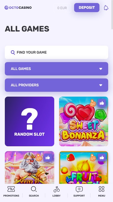 SoftSwiss, Evolution Gaming, BetSoft, Yggdrasil и многие другие известные производители программного обеспечения для онлайн-казино сотрудничают с OctoCasino. Оператор предоставляет высококачественный развлекательный контент и предлагает полный спектр игр казино .