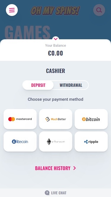 Варианты банковских операций в Oh My Spins Casino