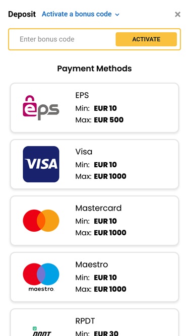 💰 Минимальный депозит€10/ €20 (Crypto)