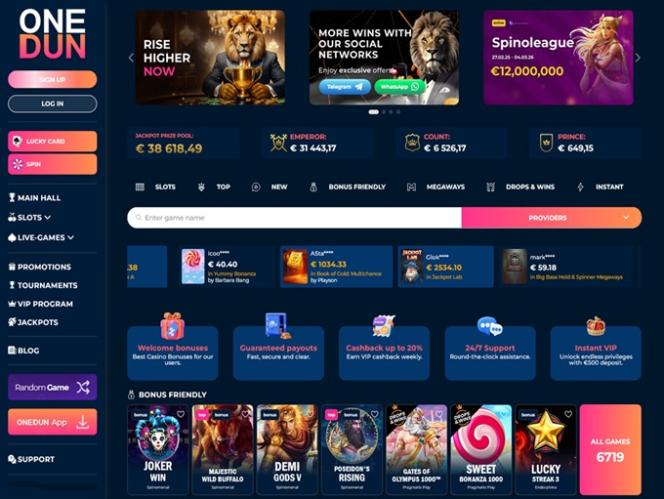 Крупные игроки индустрии сотрудничают с OneDun и предоставляют игрокам превосходный выбор игр. В список поставщиков программного обеспечения, с которыми сотрудничает казино, входят BetSoft, Evolution Gaming, Yggdrasil, Endorphina и многие другие известные компании в сфере iGaming.