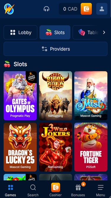 Для начала мы рекомендуем попробовать игры от самых популярных в сообществе разработчиков, таких как NetEnt , Pragmatic Play , Play'N Go , Evolution Gaming , Yggdrasil и Habanero Systems . Позже вы можете попробовать увлекательные игры от небольших студий, таких как SilverBack Studios, FastSpin и Mancala Gaming.