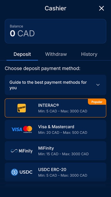 Сайт доступен исключительно на английском или французском языке. Это может показаться существенным недостатком, но это логично, учитывая, что компания принимает игроков только из Канады.