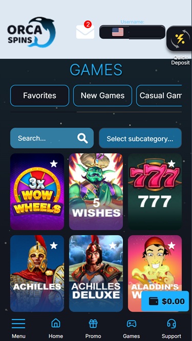 Кстати, в Orca Spins нет игр с живыми дилерами , поскольку RTG их не предлагает.