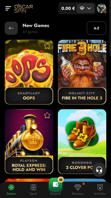 Казино Oscarspin предлагает солидный список из более чем 60 поставщиков программного обеспечения на выбор, что позволит вам попробовать практически все виды азартных игр. В каталоге представлены как ведущие разработчики, так и множество менее известных компаний, чьи игры заслуживают вашего внимания и денег.
