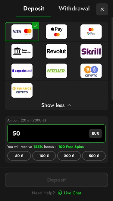 Казино принимает как криптовалюты, так и фиатные валюты.