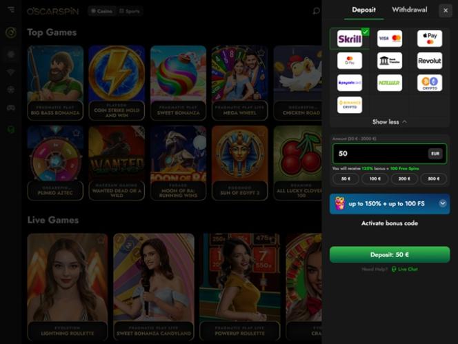 Казино Oscarspin, основанное в 2024 году, — это масштабный игорный сайт, предлагающий множество развлечений, включая ставки на спорт и другие виды азартных игр. Игрокам доступны тысячи слотов на реальные деньги, настольные игры, игры с живыми дилерами, игры с мгновенным выигрышем и скретч-карты, что позволяет каждому найти именно то, что он ищет. Кроме того, бренд предлагает солидную программу акций с различными бонусами и принимает криптовалюты, такие как Bitcoin.