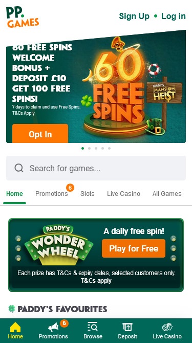 Paddy Power Casino не получил одобрения от Wizard of Odds.