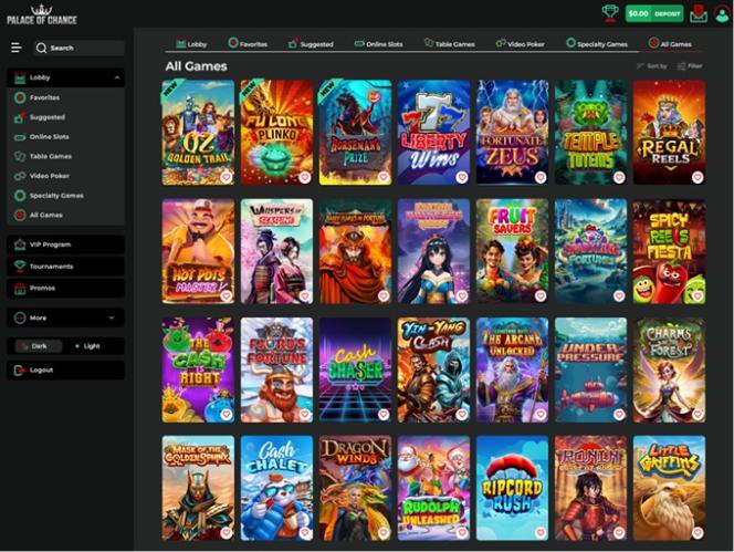 Palace of Chance также является домом для 25 Другие игры перечислены ниже: