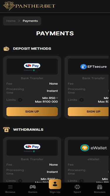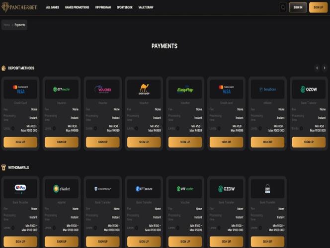 Созданное специально для игроков, проживающих в Южной Африке, онлайн-казино Pantherbet пользуется популярностью у тех, кто ищет динамичную игру и первоклассный игровой опыт в безопасной и честной обстановке.