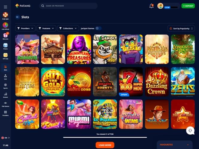 Любители онлайн-слотов смогут насладиться игрой в более чем 10 000 уникальных слотов на реальные деньги в казино Patang, среди которых наиболее популярны следующие: