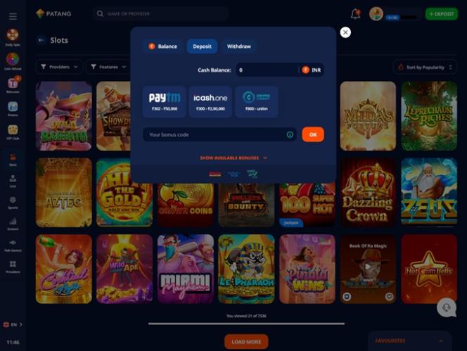 Основанное в 2025 году, казино Patang — это крупный игорный сайт, который в основном принимает игроков из Индии и обещает предложить им широкий выбор игр казино и вариантов ставок на спорт, включая сотни слотов на реальные деньги, игры с живыми дилерами, мгновенные игры и настольные игры, а также множество акций, бонусов и программ лояльности.