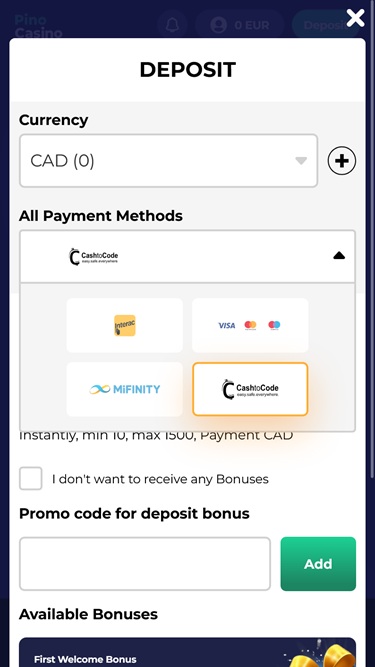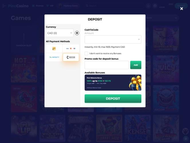 Варианты банковских операций в Pino Casino