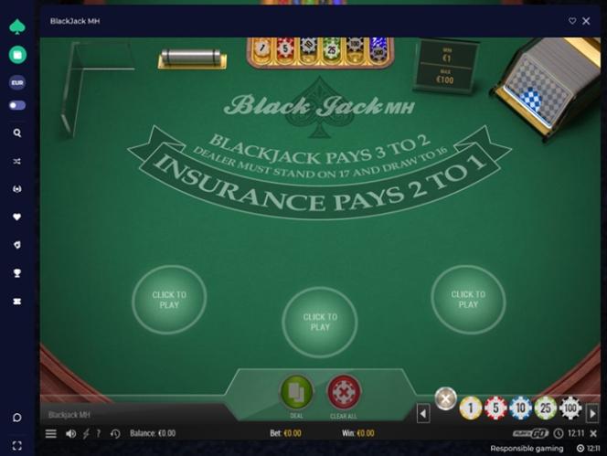 | European Blackjack | Стоять | Нет | 9–11 | 1 | - | - | Да | Нет | 99.33% | 6 | Нет |