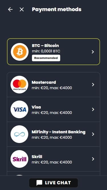 Вся коллекция игр разделена на две основные категории: Казино и Live-казино, обе работают на программном обеспечении от самых популярных поставщиков игр для казино. Упомянем лишь некоторых из них: NetEnt, Relax Gaming, PlayTech, Yggdrasil...
