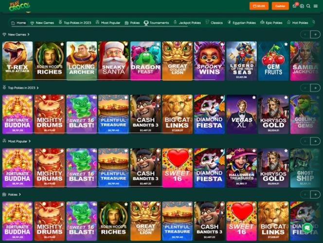 На PlayCroco представлено приличное количество слотов (или игровых автоматов), так как сайт предлагает полный набор игр от RTG. Доступны различные видеослоты и классические слоты с разнообразными темами и функциями. Предусмотрены различные прогрессивные джекпоты, а также множество мобильных слотов.
