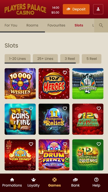 Players Palace Casino — это онлайн-казино, открывшееся в 2006 году и являющееся одним из двадцати онлайн-казино, принадлежащих оператору Casino Rewards. Казино известно своей обширной игровой библиотекой, отличной службой поддержки и привлекательным предложением бесплатной игры для новых игроков.Информация о казино