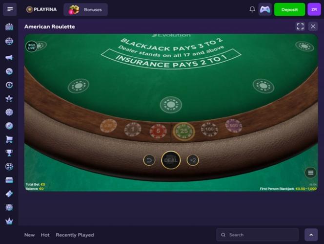 Playfina Casino Blackjack (Evolution Gaming)Расширять