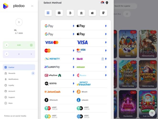 Казино Pledoo поддерживает различные способы пополнения счета и вывода средств. Игроки могут выбрать различные типы платежных карт, электронные кошельки, банковские переводы, а также криптовалютные способы оплаты.