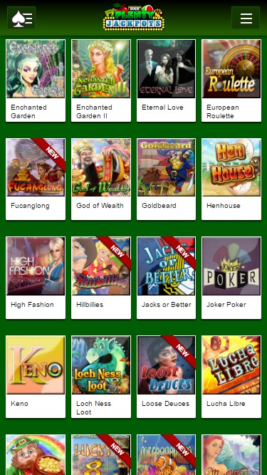 Plenty Jackpots также является домом для 25 Другие игры перечислены ниже: