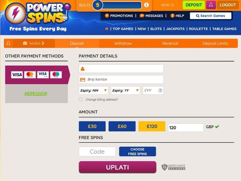 Power Spins работает на программном обеспечении Microgaming, Net Entertainment, Playtech, 1x2gaming, Big Time Gaming, EYECON, Play'n GO, Quickspin, Rabcat, Realistic Games, Red Tiger Gaming, IGT, Gameburger Studios, Shuffle Master, Games Global, Ash Gaming, Bally Technologies, Blueprint Gaming, Leander Games, WMS, Gaming Realms, SG Interactive, SUNfox Games and CORE Gaming , и игры казино доступны через веб-платформу мгновенной игры, которая загружается непосредственно в вашем любимом интернет-браузере. Сайт также совместим с мобильными устройствами, то есть вы можете играть со своего смартфона или планшета.