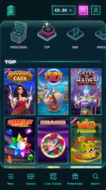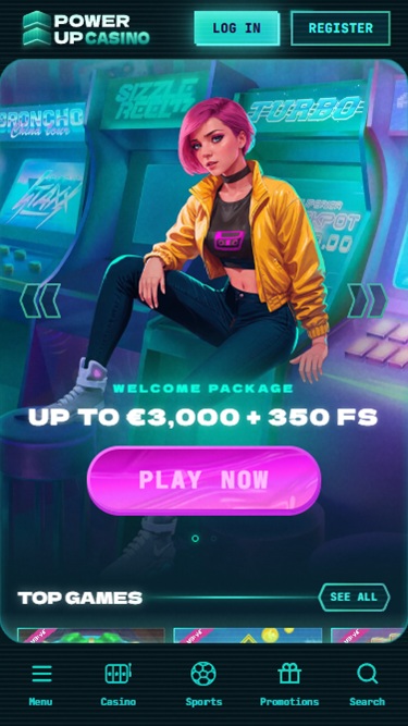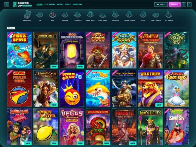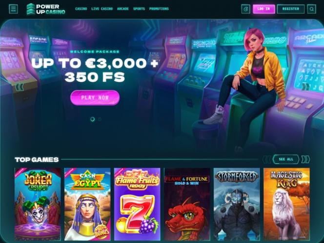 Платформа казино выполнена в ретро-футуристическом стиле с множеством неоновых графических деталей, создающих прекрасную игровую атмосферу. PowerUp впечатлит настоящих онлайн-игроков не только своим внешним видом, но и безупречной оптимизацией для мобильных устройств, а также богатой программой акций. Давайте посмотрим, что еще может предложить этот игорный сайт.