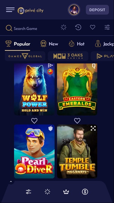 Операторы Prive City Casino это прекрасно понимают, поэтому вы можете увидеть здесь множество известных брендов, таких как Microgaming, Relax Gaming , Playson, Big Time Gaming и другие. Это предоставляет игрокам большой выбор, особенно когда речь идет об онлайн-слотах.